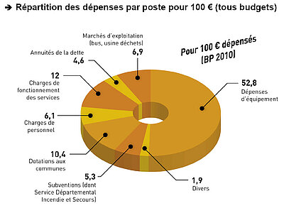 L'encours total de la dette atteint cette année 234,7 millions, contre 101,8 millions en 2009. Cette évolution de l'emprunt reste conforme aux prévisions. Et grâce à une situation financière saine, appuyée sur la maîtrise des dépenses de fonctionnement, l'annuité de la dette reste faible (elle représente moins de 5% des dépenses).