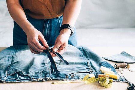 Démonstration de réparation textile par l'Atelier d'Eli, couturière labellisée Répar'acteurs et Bonus Réparation.