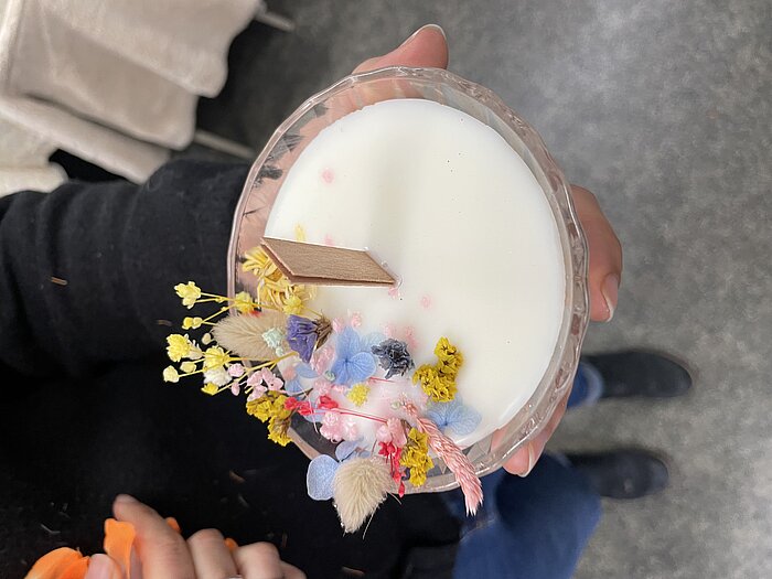Viens fabriquer une bougie 100% naturelle, agrémentée de fleurs séchées, pour une décoration d'hiver tout en douceur et en poésie. Avec l'Atelier Ricochet.