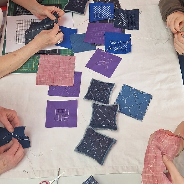 Création de patch sur la base d'un motif géométrique avec un point régulier pour orner et réparer vos vêtements.