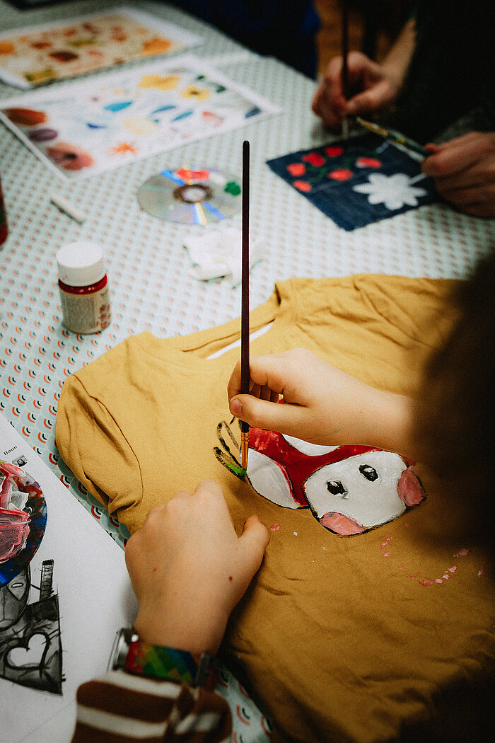 Personnalise tes vêtements à l'aide de tampons et de peinture textile. Possibilité d'amener un vêtement à customiser ou patch en tissu mis à disposition.