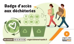 Un badge est nécessaire pour accéder aux déchèteries d'Angers Loire Métropole. Les badges sont remis gratuitement, à raison d'un par foyer. Vous pouvez faire votre demande sur un portail web, Ouvre une nouvelle fenêtre sécurisé ou avec formulaire papier avec enveloppe T disponible en mairie ou dans les déchèteries.